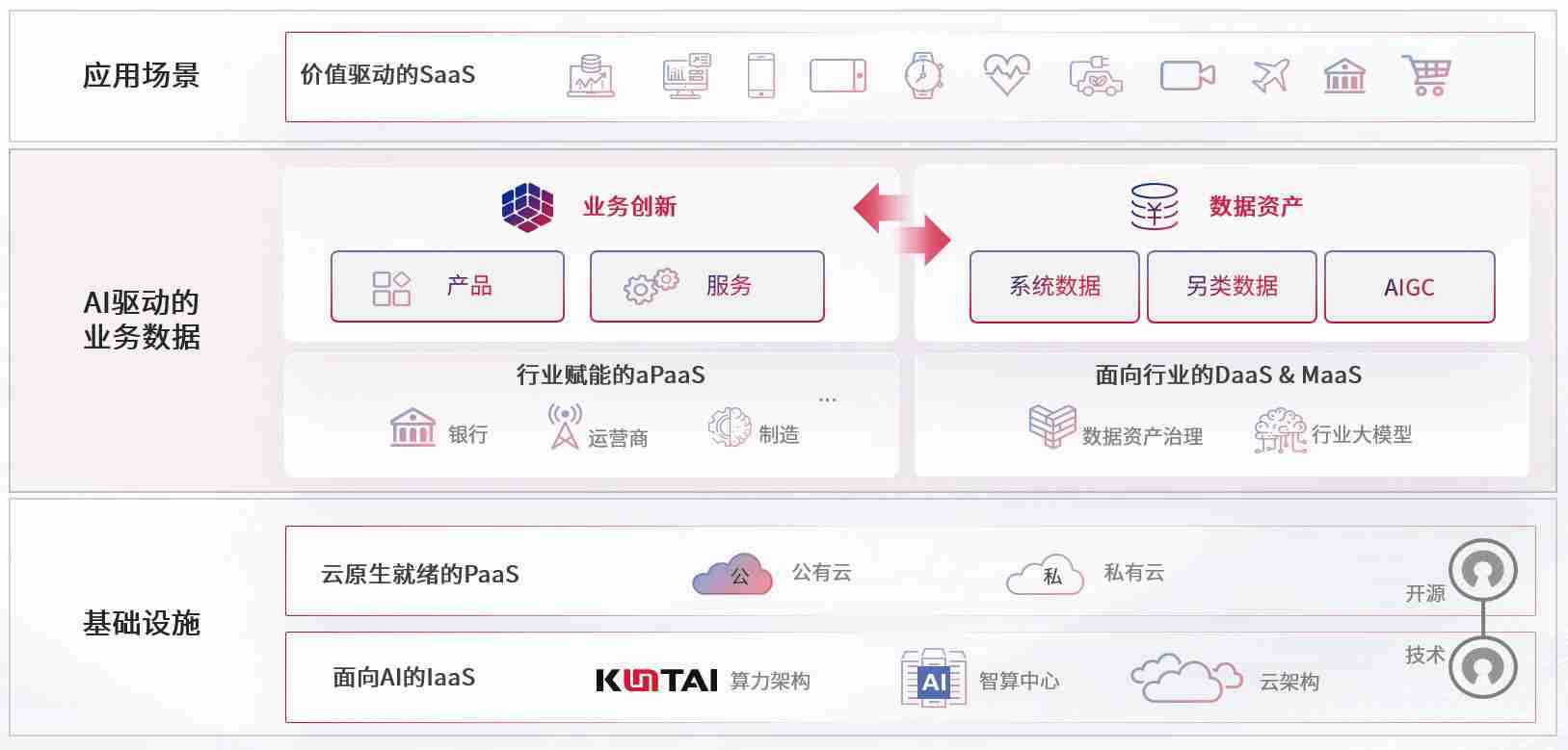 数字时代,,,围绕企业数字化转型的关键要素,,老哥网数码开创性的提出数云融合战略和技术体系框架,,,,着力在云原生、、、、数字原生、、AI原生和信创产业上架构产品和服务能力,,为处在不同数字化转型阶段的快消零售、、、、汽车、、、金融、、、医疗、、政企、、教育、、、运营商等行业客户提供泛在的敏捷IT能力和融合的数据驱动能力,,构建跨界融合创新的数字业务场景和新业务模式,,,助力企业级客户建立面向未来的核心能力和竞争优势,,全面推动社会的数字化、、、、智能化转型升级。。。