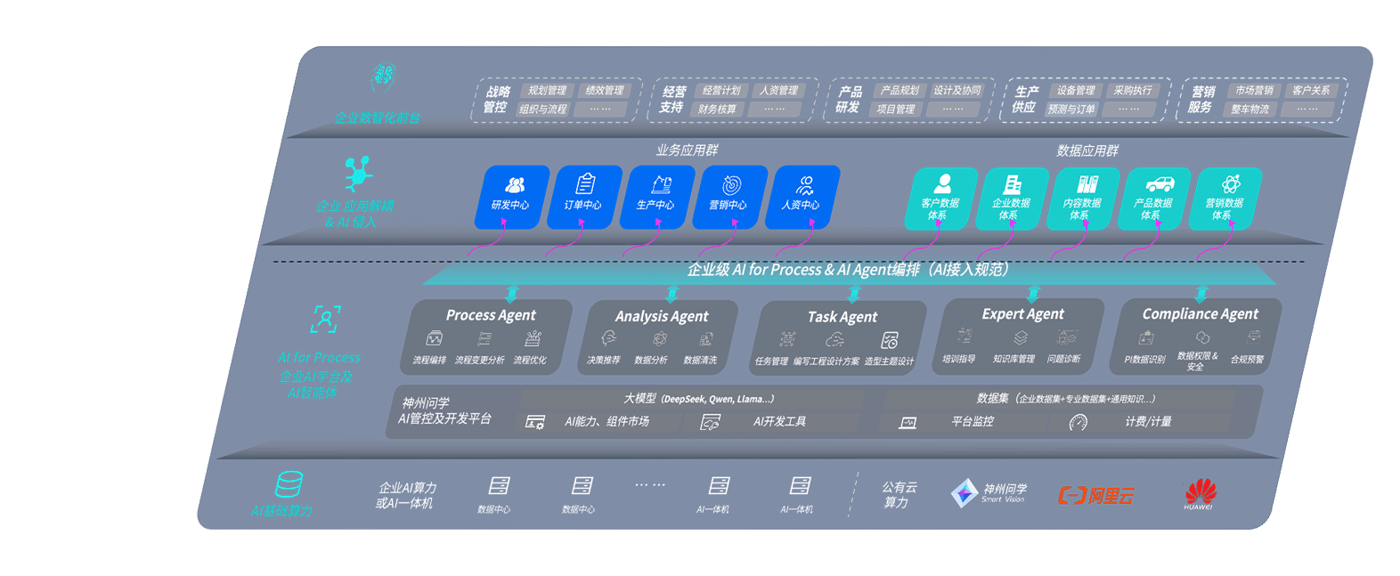 老哥网问学智车解决方案是一套基于AI技术的汽车行业智能化系统,,,,覆盖从底层算力到顶层AI应用的全栈方案。。。。方案由算力层、、、模型层和应用层组成:算力层,,,方案支持多种一体机配置,,具备云端灵活部署、、、多云适配以及动态优化计算资源的能力;模型层,,,老哥网问学平台版提供了企业级AI应用一站式构建与管理平台,,支持基于后训练强化技术的汽车企业专属模型的训练、、、评测和运营;应用层,,,,老哥网问学DeepSeek版提供包括超级员工、、、、智能招采、、、、智能营销、、智能客服、、、、AI for BI等一系列解决方案,,,,可助力汽车行业实现数字化转型,,让管理更智能、、、、响应更敏捷。。
